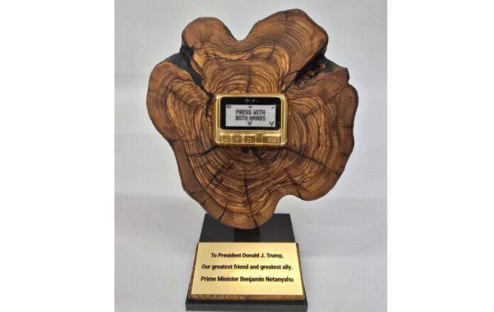 Нетаньяху опубликовал фотографию позолоченного пейджера, который он подарил Трампу во время визита в Белый дом.